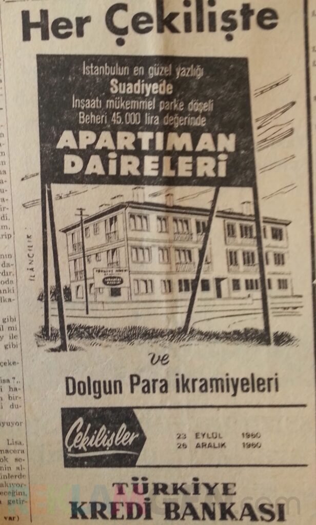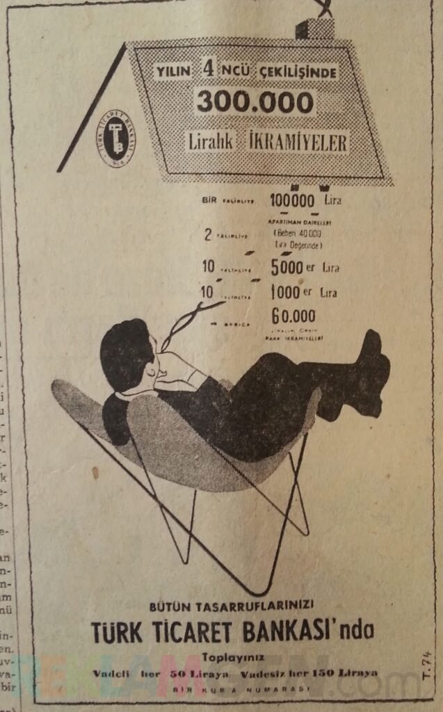 Türkiye’de 60’ların başında banka reklamları popülerleşmeye başlamıştı. Eskiden gazetelerde okurlar hep bu tip ilanlar görürlerdi ama 60’lı yılların ilk birkaç yılı, para, araba, ev gibi para veren banka piyangolarının doruk noktasıydı.